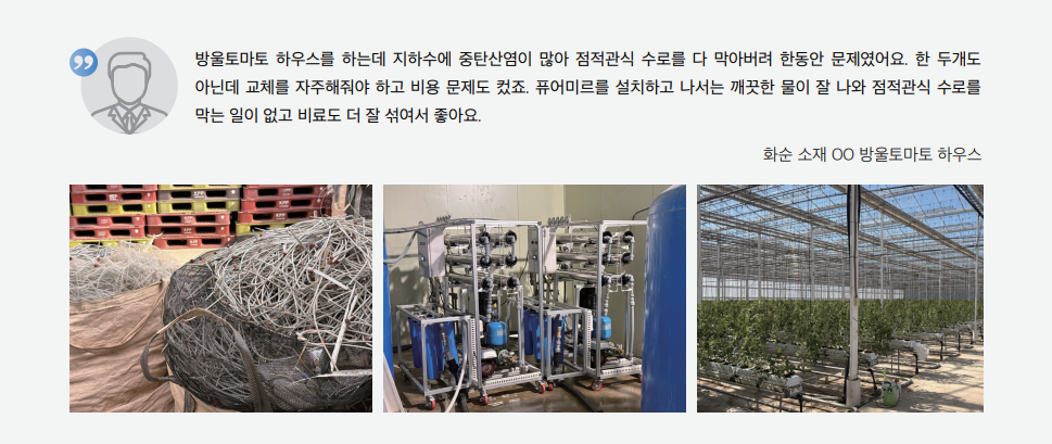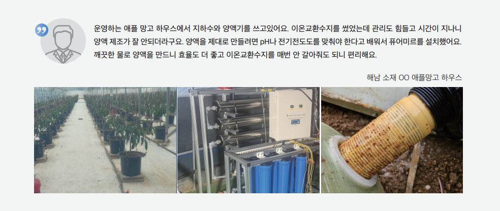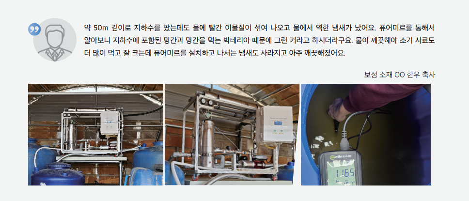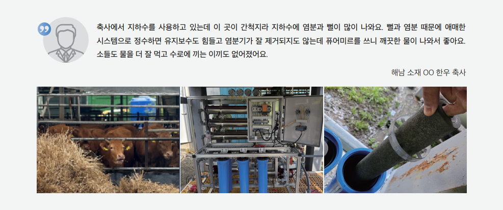 지하수에 섞여 있는 철·망간, 탄산칼슘 등은 배관이나 보일러에 침전되어 고장의 원인이 되기도 합니다. 보일러의 소음이 커지거나 배관에서 역류나 누수가 발생하는 것도 이 때문일 수 있습니다. 축사에서 주로 쓰이는 자동 급수기의 고장과 하우스 점적관수에 쓰이는 관로가 막히는 것도 대표적인 현상입니다.